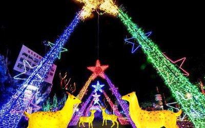 公園景區玻璃鋼彩繪照明發光梅花鹿雕塑